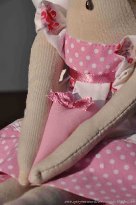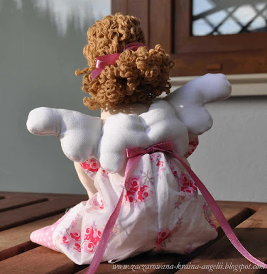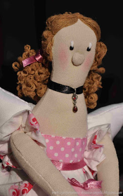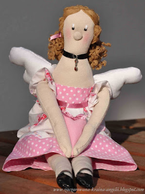 Oto ona. Moja pierwsza anielica. Uszyłam ją z potrzeby serca, może dlatego ma serce na dłoni. Spodobała mi się na tyle, że na pewno nie będzie ostatnia.