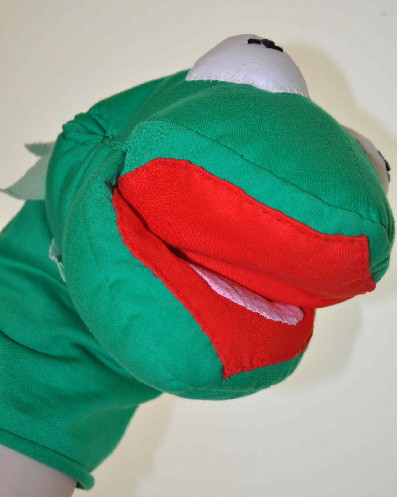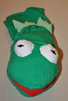 Zapewne żadnej mamie, tudzież nie mamie, za to osobie mającej stały kontakt z małym, no dajmy na to kilkunastomiesięcznym dziecięciem, nie trzeba jakoś specjalnie tłumaczyć jaką katorgą może okazać się kilkugodzinna podróż samochodem z takim młodym pasażerem….nasza mała przypięta do fotelika, po kilku minutach podziwiania uciekających za oknem drzew, zaczyna sie potwornie nudzić i niezmiennie potwornie marudzić… Ponieważ na tegoroczną majówkę postanowiliśmy wyjechać w jakieś przyjemne miejsce z dala od miejskiego zgiełku, trzeba było podjąć jakieś kroki, celem uprzyjemnienia maluchowi trudów podróży.. Olśniło mnie dosłownie na dzień przed wyjazdem.. Córa została zahipnotyzowana krótkim telewizyjnym występem słynnej żaby, pomyślałam, że to może być to! Wyszperałam kawał zielonego materiału i nożyczki poszły w ruch. W taki sposób narodziła się pacyna Kermita, która może i nie do końca strannie wykonana (tłumaczę to brakiem czasu), ale za to jakże skutecznie odpędzała smutki naszej córci podczas nużącej podróży samochodem 🙂