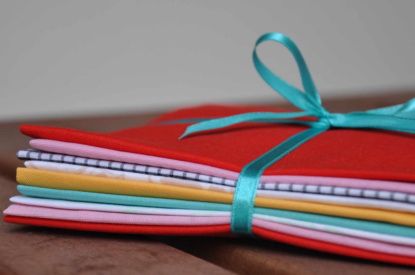 Oprócz lalki przygotowałam zestaw kilku kawaków cienkiego płócienka, w kilku kolorach i wzorach.