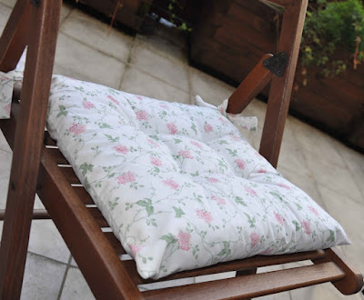 Wreszcie uszyłam! Udało się dzięki temu, że stałam się szczęśliwą posiadaczką maszyny do szycia! Dostałam ją w prezencie od taty i teraz wprost nie potrafię przestać szyć. Pokrowce na poduszki uszyłam z materiału który nabyłam za całe 5 złotych w lumpeksie. Jestem z nich bardzo zadowolona. Wreszcie można wygodnie usiąść na tarasie rozkoszować się słońcem.