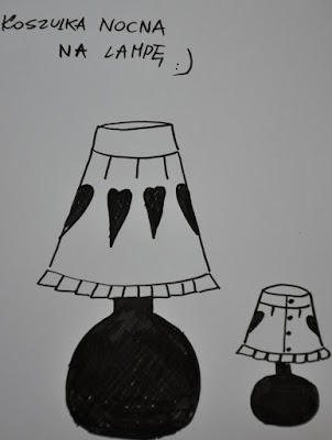 Nasza Mała nie potrafi zasnąć przy zgaszonym świetle, więc przez cały (czasem dość długi) czas usypiania i potem jeszcze przez pół nocy musimy mieć włączoną w sypialni lampę, która rozświetla jej kącik.. Niestety lampa jest dość duża i świeci na tyle mocno, że było nam wszystkim łącznie z Małą zdecydowanie zbyt jasno. Dlatego na lampie lądowały wciąż przeróżne rzeczy, a to pieluszka, a to sukienka Małej, a to t-shirt męża.. Nie wyglądało to dobrze, a co istotniejsze, nie było zbyt bezpieczne.. Dlatego, któregoś wieczora usiadłam i nabazgrałam coś takiego.