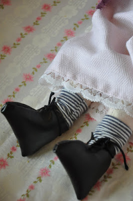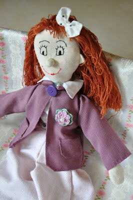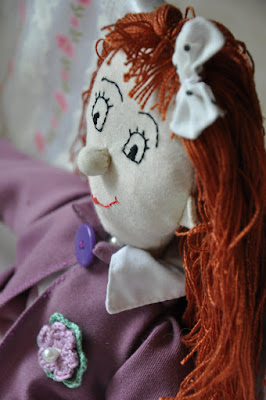 Lala jest nieco starsza od mojej córki. Uszyłam ją kiedy tylko dowiedziałam się, że mała przyjdzie na świat. Powstała w myśl zasady, że każda mała dziewczynka powinna mieć lalkę szmaciankę 🙂 chociaż sama takowej niestety nie miałam… Teraz odświeżyłam troszkę jej emploi. Uszyłam jej długą spódniczkę wykończoną koronką i śliwkową marynarkę z kieszeniami…i choć młoda na razie nie dostaje jej jeszcze do zabawy, gdyż z uporem maniaka próbuje odgryźć perełkowe guziczki, lalka czeka spokojnie na komodzie na czas kiedy jej właścicielka nieco do niej dorośnie 😀